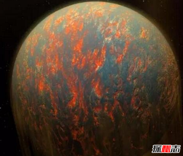 这颗行星同样受潮汐能影响,一侧始终朝向所绕恒星,另一侧则永远处于黑夜之中。根据天文学家的计算,朝着恒星的一侧温度达到4220华氏度(约合2327摄氏度)。