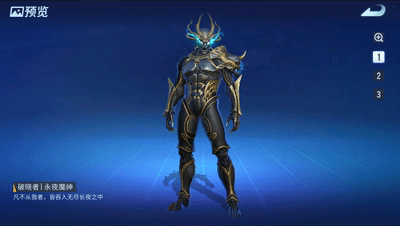 漆黑的盔甲镶上金色的纹理,尽显王者风范,以威严的鬼神面目傲视群雄,震慑天下。永夜魔神从混沌中降临,凡不从我者,皆吞入无尽长夜之中。