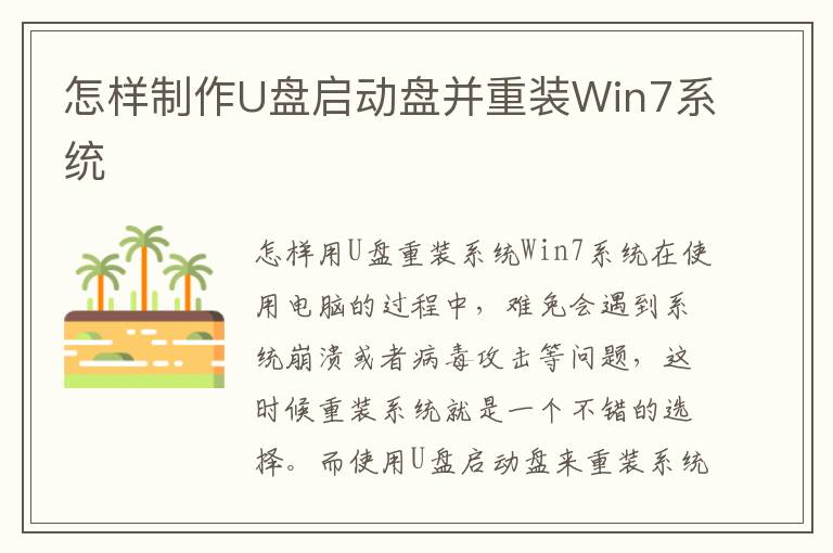 怎样用U盘重装系统Win7系统在使用电脑的过程中,难免会遇到系统崩溃或者病毒攻击等问题,这时候重装系统就是一个不错的选择。而使用U盘启动盘来重装系统则是一种方便快捷的方
