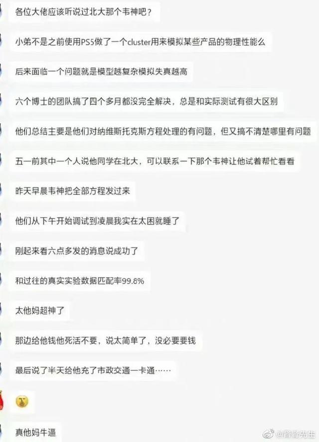 在聊天记录中,韦东奕被塑造得神乎其神。