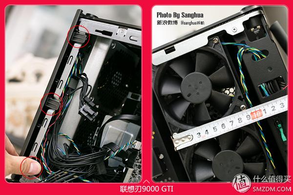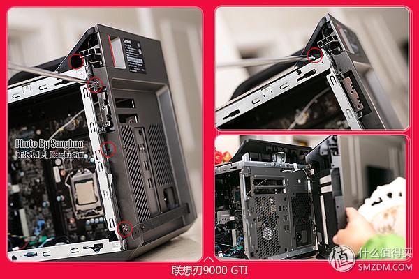 打开左右侧板时我很惊讶,刃9000 GTI为了在如此小体积内确保更好的散热,进行了全新的结构设计,不同于我们常见的如乔思伯迷你机箱等一系列HTPC机箱所做的仅仅是将机箱做小,而在结构上和传统的机箱并没有很大的差别。首先为了减少显卡、CPU散热之间的干扰采用倒置机箱设计。