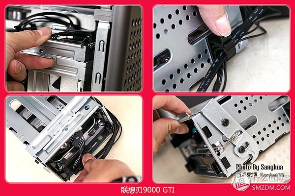要在这么小的体验内放下3.5寸的硬盘真的很不容易,而刃9000 GTI采用了这种活动式硬盘支架,可以通过活动卡扣直接旋转90度以最大化地利用内部空间。