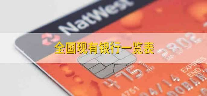 全国现有银行有国家开发银行、中国进出口银行、中国农业发展银行、中国工商银行、中国农业银行、中国银行、中国建设银行、交通银行、中信银行、中国光大银行、华夏银行、中国民生银行、招商银行、兴业银行、中国邮政储存银行、上海浦东发展银行、平安银行、兴业银行、广发银行、渤海银行、浙商银行、恒丰银行、北京银行、天津银行、河北银行、保定银行股份、沧州银行、承德银行、邯郸银行廊坊银行、秦皇岛银行、唐山银行、邢台银行、张家口银行、晋商银行、大同银行、晋城银行、晋中银行、阳泉商业银行、长治银行、包商银行、内蒙古银行、鄂尔多斯银行、温州银行、浙江稠州商业银行、浙江民泰商业银行浙江泰隆商业银行、徽商银行、福建海峡银行、泉州银行、江西银行、赣州银行、九江银行、上饶银行、齐鲁银行德州银行、东营银行、济宁银行、莱商银行、临商银行、齐商银行、日照银行、泰安银行、威海市商业银行、潍圹行、烟台银行、枣庄银行、中原银行、郑州银行、平顶山银行、洛阳银行、焦作中旅银行、华融湘江银行、长沙行、汉口银行、湖北银行、广州银行、东莞银行、广东华兴银行、广东南粤银行、珠海华润银行、广西北部湾银行桂林银行、柳州银行、海南银行、重庆三峡银行、重庆银行、成都银行、达州银行、长城华西银行、乐山市商业行、凉山州商业银行、泸州银行、绵阳市商业银行、四川天府银行、攀枝花市商业银行、遂宁银行、雅安市商业行、宜宾市商业银行、自贡银行、贵阳银行、贵州银行、富滇银行、曲靖市商业、云南红塔银行、西藏银行、西安行、长安银行、甘肃银行、兰州银行、青海银行、宁夏银行、石嘴山银行、乌鲁木齐银行、昆仑银行、哈密市商业行、库尔勒银行、新疆汇和银行、大连银行、宁波银行、宁波东海银行、宁波通商银行、厦门银行、厦门国际银行、青岛银行、新疆银行、中德住房储蓄银行、天津金城银行、上海华瑞银行、浙江网商银行、温州民商银行、深圳前海微众银行、湖南三湘银行、重庆富民银行、四川新网银行、北京中关村银行、吉林亿联银行、武汉众邦银行、福建华通银行、威海蓝海银行、江苏苏宁银行、梅州客商银行、安徽新安银行、辽宁振兴银行、江西裕民银行、北京农村商业银行、天津农村商业银行、河北正定农村商业银行、南充农村商业银行、四川营山农村商业银行、四川仪陇农村商业银行、四川阆中农村商业银行、新疆轮台农村商业银行、四川南部农村商业银行、四川西充农村商业银行、星展银行、瑞穗银行、三井住友银行、三菱日联银行、首都银行、新联商业银行、盘谷银行、正信银行、玉山银行、澳大利亚和新西兰银行、法国巴黎银行、法国兴业银行、东方汇理银行。